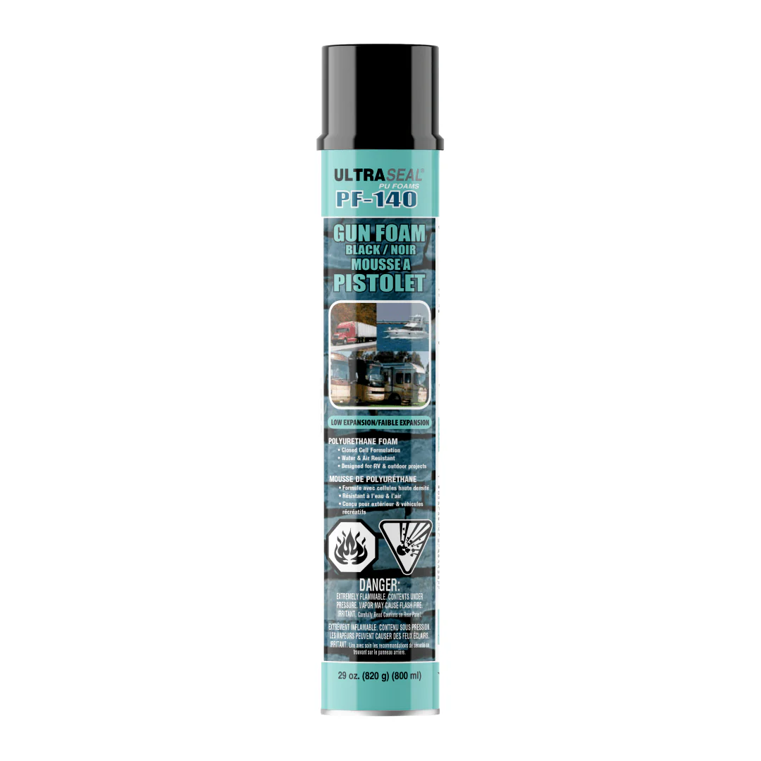 UltraSeal® PF-140 Black Gun Foam is a multi-purpose, low expansion, UL classified one-component polyurethane foam ideal for landscaping, RV and transportation applications. It will seal and hide any unwanted gaps, holes and crevices.